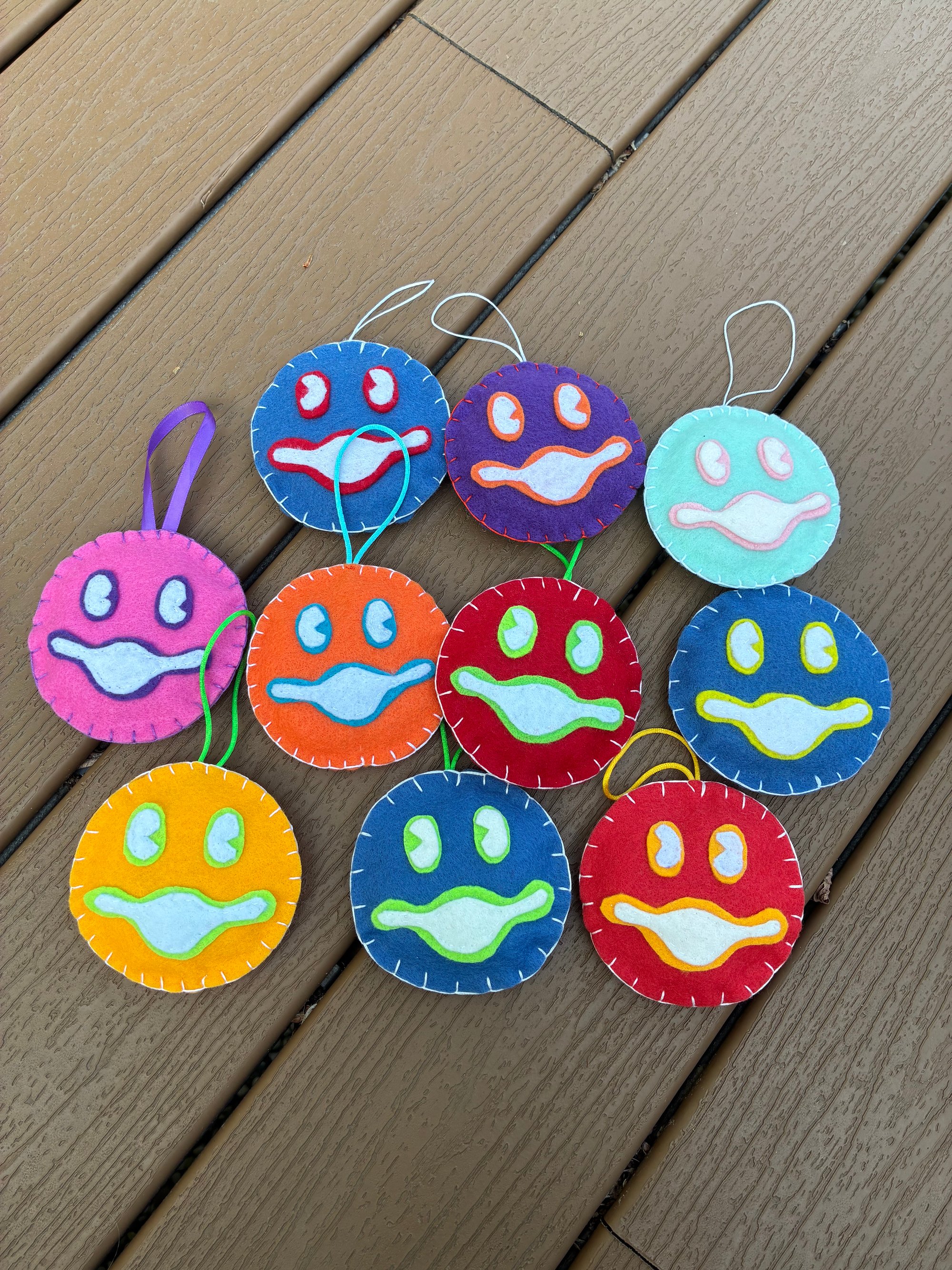 This felt ornament is the perfect addition to any Gizzhead's tree. Each ornament is completely handmade from start to finish with so much Gizzy love. Comes with a securely sewn on loop. Ornament measures approximately 3.75" in diameter.